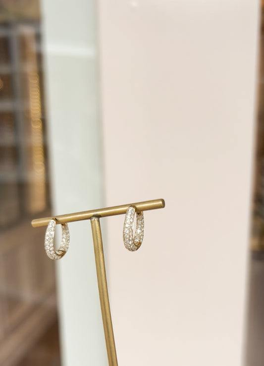 Three Row Pave Inside Out Oval Mini Hoop Single