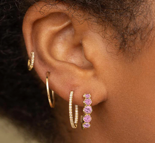 Graduated Emerald Pave Diamond Mini Hoop - SINGLE