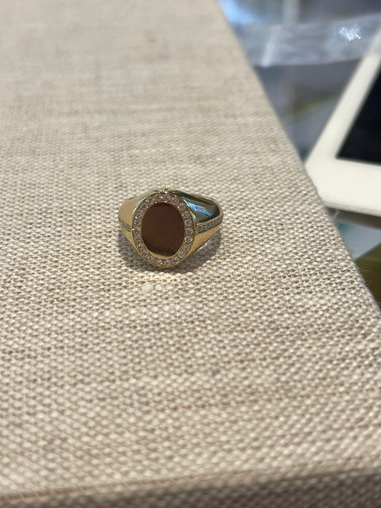 Porte Bonheur Signet Ring-Orange Sapphire, Black Enamel, Diamond Halo