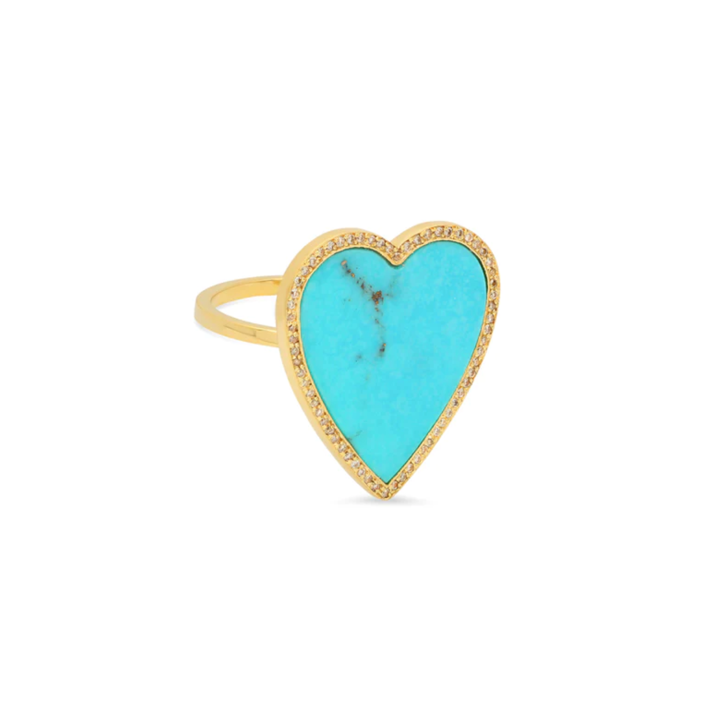 Handcrafted in 18-karat yellow gold, this statement making heart ring is set with turquoise inlay and framed by shimmering pavé diamonds. A symbol of love, wear the forever piece to elevate your everyday, signature look. Known for its protective qualities, each natural stone is one-of-a-kind and may vary slightly from piece to piece.