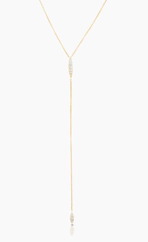 A gorgeous lariat decorated with calla lily inspired shapes. Wear it alone, or layer this piece with our choker chains to elongate this delicate look.