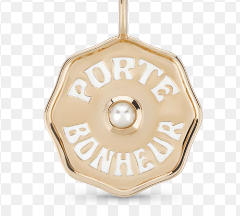 Mini PB Coin Charm White Pearl, White Enamel - CHARM ONLY